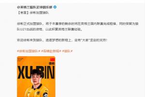 体育资讯01月30日讯 英超球队狼队官方消息,U23国足队长、21岁青岛西海岸中场徐彬自由身转会加盟。