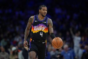 本场比赛,太阳球员杰伦·格林表现还可以,不过在下半场抢板背部重摔倒地险些受伤,替补打了16分钟,投篮9中4,三分球7中3,拿到11分4篮板1助攻1抢断的数据,正负值+7。