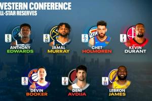 西部全明星替补:华子 切特 穆雷 布克 阿夫迪亚 杜兰特 詹姆斯!