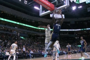 GIF-锡安胯下突破杀入内线 迎着防守上演折叠暴扣