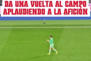 《马卡报》今日晒出视频,表示在其他球员离场后,库尔图瓦单独绕场一周感谢球迷的支持。