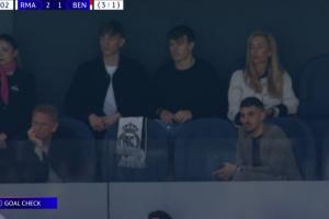 体育资讯02月26日讯 欧冠1/8决赛附加赛首回合,皇家马德里客战本菲卡,本场因伤缺战的赫伊森在伯纳乌看台观战。