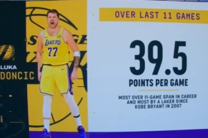 东契奇连续11战场均爆轰39.5分创生涯纪录 队史继07年科比后最多!