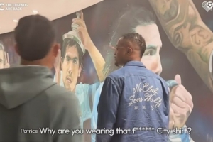 埃弗拉因为特维斯效力过曼城而取笑他,说道:“你为什么要穿那件该死的曼城球衣?”这引起了其他两人的欢笑。