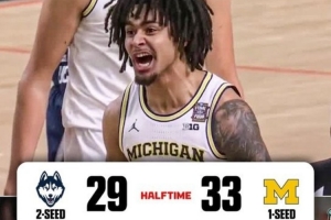疯三决赛上半场:密歇根三分8中0 仍33-29领先康涅狄格