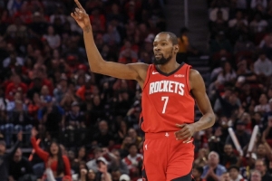 杜兰特上半场出战17分钟,11投6中,三分4中2,罚球6中5砍下19分4篮板3助攻1抢断,首节他就攻下16分,创造火箭球员本赛季单节得分新高。