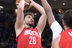本场比赛,火箭中锋阿尔佩伦·申京31中11,其中三分1中0,罚球10中8,得到30分13板8助2盖帽5失误,正负值+5。