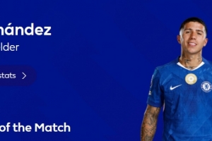 本场比赛恩佐在最后时刻破门锁定胜局,赛后他也当选英超官方球迷票选全场最佳球员。