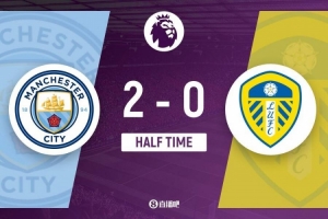 半场结束,曼城暂2-0利兹联。