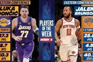 周最佳出炉:东契奇场均轰37.3分8.7板10.3助 布伦森率队4胜0负