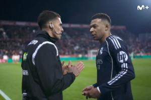 体育资讯12月02日讯 西甲第14轮皇马客场1-1战平赫罗纳,比赛中Movistar的镜头捕捉到了姆巴佩与场边第四官员亚历杭德罗·克莱门特的一次言语冲突。