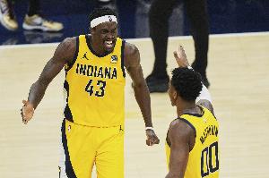 上半场比赛,西亚卡姆和马瑟林进攻端联手扛起球队,其中西亚卡姆12中6,三分2中2拿到14分5篮板1助攻;马瑟林则是11中5,三分7中2,罚球2中2拿到14分3篮板1助攻2抢断1盖帽。