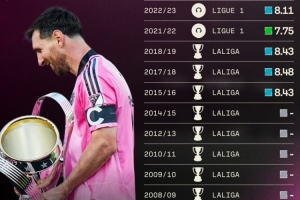 据Sofascore统计,梅西职业生涯至今13次赢得联赛冠军,包括西甲10冠、法甲2冠、美职联1冠。