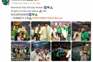 足协杯决赛,国安3-0战胜河南队夺得冠军,法比奥上演帽子戏法,他发文庆祝夺冠,这位前锋在个人社媒写道:将永远存在的时刻♾️💚🙏 一切荣耀归于上帝🙏