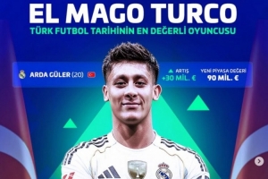 在本次更新前,德转身价最高的土耳其球员是伊尔迪兹,身价为7500万欧。