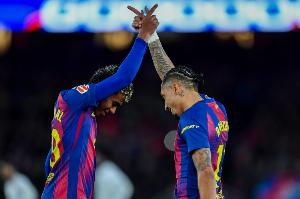 体育资讯12月14日讯 西甲第16轮,巴萨2-0奥萨苏纳,本场拉菲尼亚梅开二度包揽球队的全部进球,还打入一粒精彩远射。