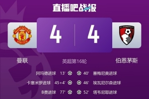体育资讯12月16日讯 在本轮英超联赛中,曼联4-4战平伯恩茅斯,3次取得领先但最终依然没能拿下胜利。