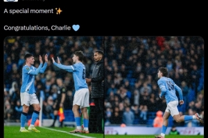 曼城官方写道:“特别的时刻。祝贺你,查理。”