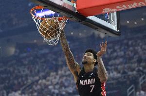 本场比赛,热火中锋韦尔攻防两端表现出色,打了34分钟15投11中,三分7中5、罚球2中1砍下28分20篮板1抢断,正负值-6。