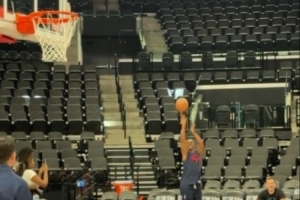 体育资讯10月13日讯 快船官方社媒更新,分享保罗赛前热身负角度三分视频。