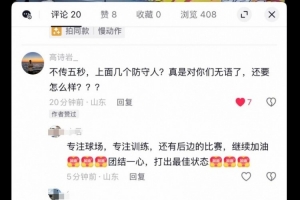 高诗岩现身评论区怒怼球迷,他写道:“不传五秒?上面几个防守人?真是对你们无语了,还要怎么样???”