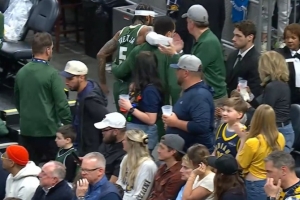 GIF-特伦特上篮落地时受伤