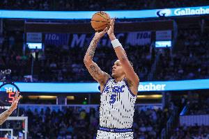 比赛最后一攻,魔术落后1分,班凯罗三分不中,绝杀失败。