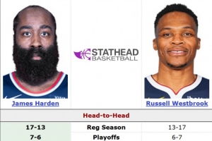 这将是哈登和威少常规赛生涯第31次交锋,此前哈登17胜13负略战小优,季后赛7胜6负差距不大。