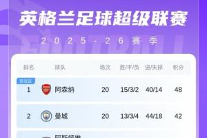 英超积分榜形势如图