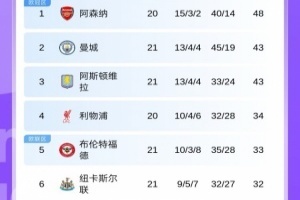 目前本轮未赛的阿森纳以5分优势领跑,本轮他们将和利物浦迎来焦点大战。