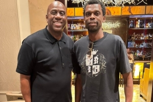 今天,NBA名宿魔术师约翰逊更推道:“在文班亚马对阵达拉斯独行侠的比赛中狂砍40分15篮板之前,看看我在和谁共度时光——费利克斯-文班亚马(文班的父亲)。”